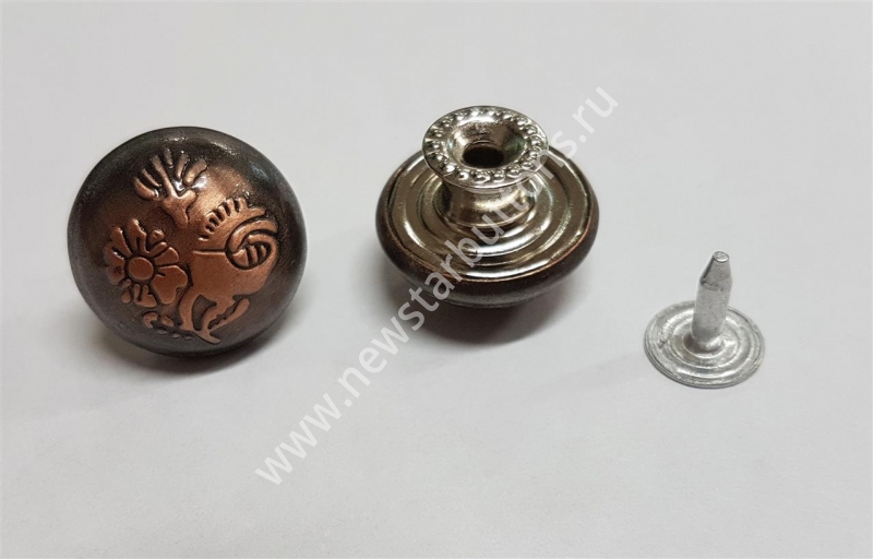 ПУГОВИЦА ДЖИНСОВАЯ 17 ММ №17-45 (ЛАТУНЬ) НЕ СТАБИЛЬНАЯ, ПОЛУСФЕРА С РИСУНКОМ ЦВЕТ ТЁМНЫЙ НИКЕЛЬ+МЕДЬ