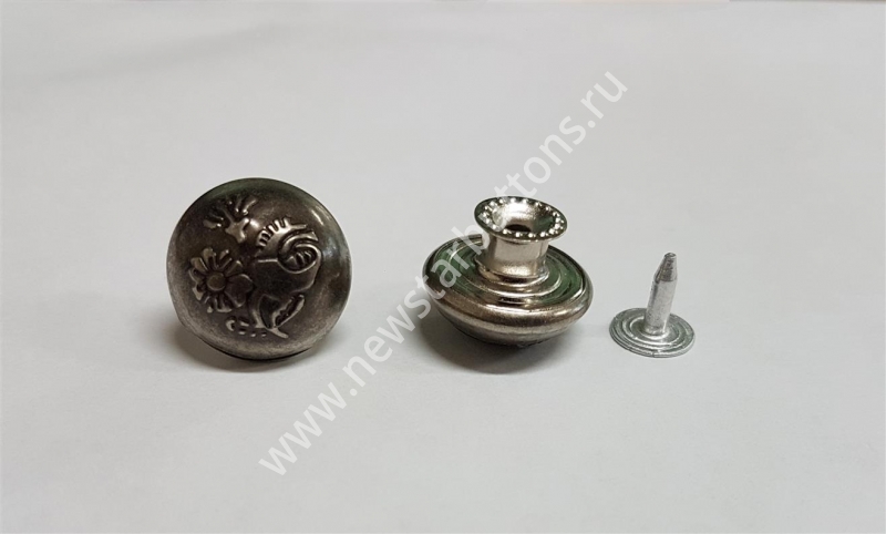 ПУГОВИЦА ДЖИНСОВАЯ 17 ММ №17-46 (ЛАТУНЬ) НЕ СТАБИЛЬНАЯ, ПОЛУСФЕРА С РИСУНКОМ ЦВЕТ ТЁМНЫЙ НИКЕЛЬ